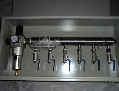 将總氣源引入,經(jing)多級緩沖處理使(shi)氣源變成很平穩(wěn),經多個出口供需(xu)要氣源的設備使(shǐ)用。